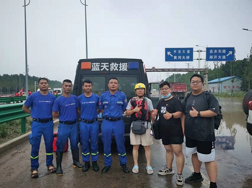 崔鵬(右三)參加鄭州“7·20”特大暴雨救援行動
