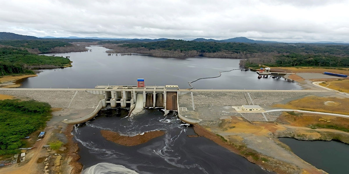 工程位于凱樂塔水電站上游6km處??値烊?4.89億m3,裝機(jī)容量450MW,年均發(fā)電量20.16億kWh。主壩為碾壓混凝土重力壩,最大壩高120m,壩軸線長1164m,混凝土填筑方量350萬m3,是現(xiàn)階段西非地區(qū)壩體最高、庫容最大、裝機(jī)規(guī)模最大的水電站。